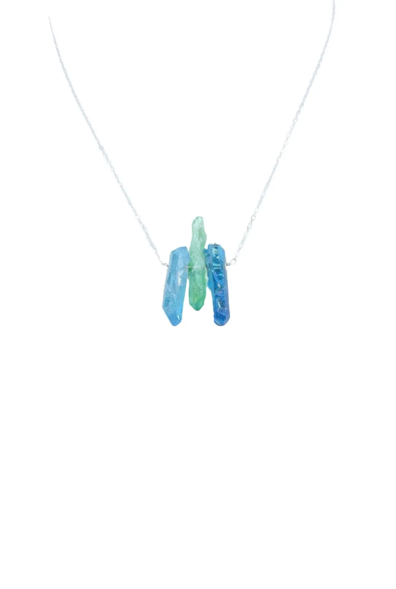 Raw Blue and Green Titanium Quartz Necklace