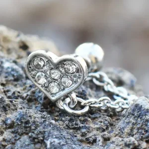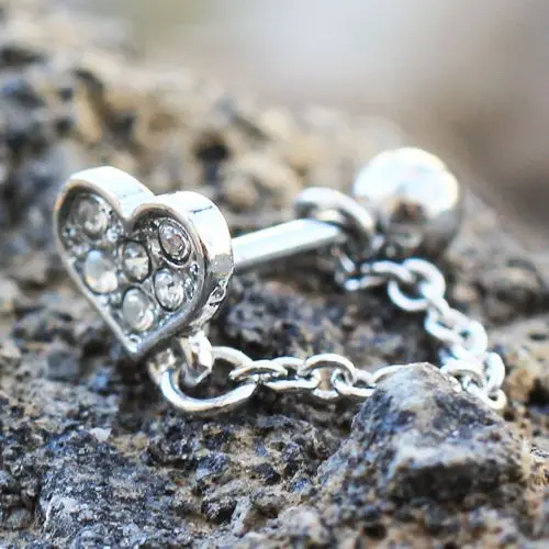Cartilage / Tragus Ring with Clear Gemmed Heart and Short Chain