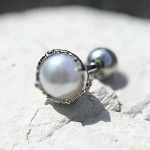 316L Stainless Steel Crown Pearl Cartilage Earring This cartilage earring is absolutely adorable, pure elegance, and glamour. This jewelry is crafted out of the highest quality implant grade 316L stainless steel with faux pearl at center warped around in a crown design. Offers comfortable fit without compromising fashion Perfect for everyday wear Features a pearl ball set on crown Piercing Type: Cartilage | Tragus Thickness: 16GA | 1.2mm Length : 1/4″ | 6mm Color : White Pearl Materials: 316L Stainless steel, Faux Pearl