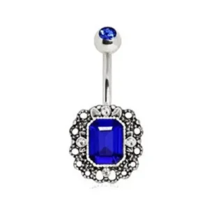 Navel Ring / Belly Button Ring with Radiant Cut Sapphire Blue CZ