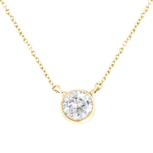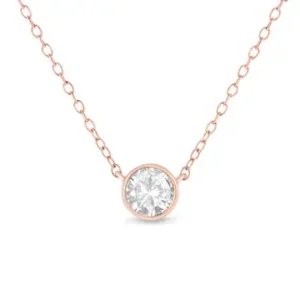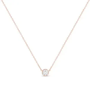Some things shouldn’t be reinvented, which is why we created the Solitaire Diamond Necklace. This is the perfect way to highlight every big occasion, transition, and personal achievement in your life. This solitaire diamond necklace features a single, round-cut 1/2 carat diamond in a genuine .925 sterling silver, and plated with 14k rose gold for extra appeal with bezel setting that hits at just the right place. This comes with an 18″ inch cable chain. Invest now; your future self will thank you later.