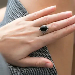 Our Boho Ringboasts a minimalist, boho influence with a mystical deep cherry redcentrepiece anda textured, gently oxidised setting.