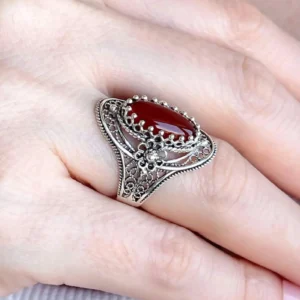 The cabochon oval cut Carnelian gemstone adds more beauty to the piece. Available in sizes 5 to 12.5 with half sizes, this affordable red stone statement ring is perfect for everyday wear and makes an excellent gift for Valentine’s Day, Mother’s Day, Thanksgiving, Christmas, or New Year’s.