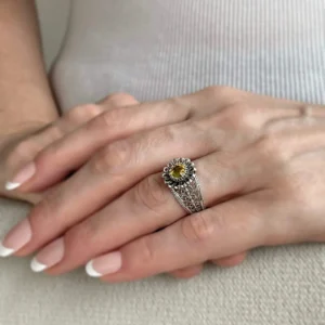 Crafted with exceptional attention to detail, this sterling silver ring boasts an attractive filigree design that is sure to impress. The yellow citrine gemstone and intricate metalwork make this ring a stylish and timeless addition to any outfit.