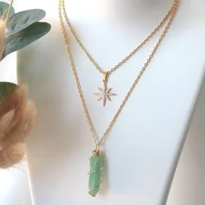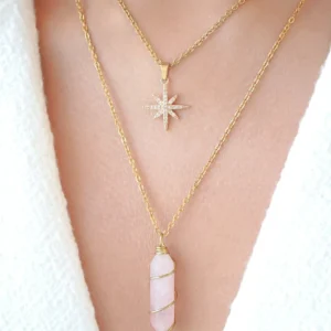 This unique and powerful healing crystal necklace has a perfectly polished crystal in the shape of a double-ended bullet that favors the flow of energy through it, in addition to being hand-wired with 18-karat gold-plated copper wire, which is resistant to corrosion. water, tarnish free and hypoallergenic (friendly to sensitive skin).