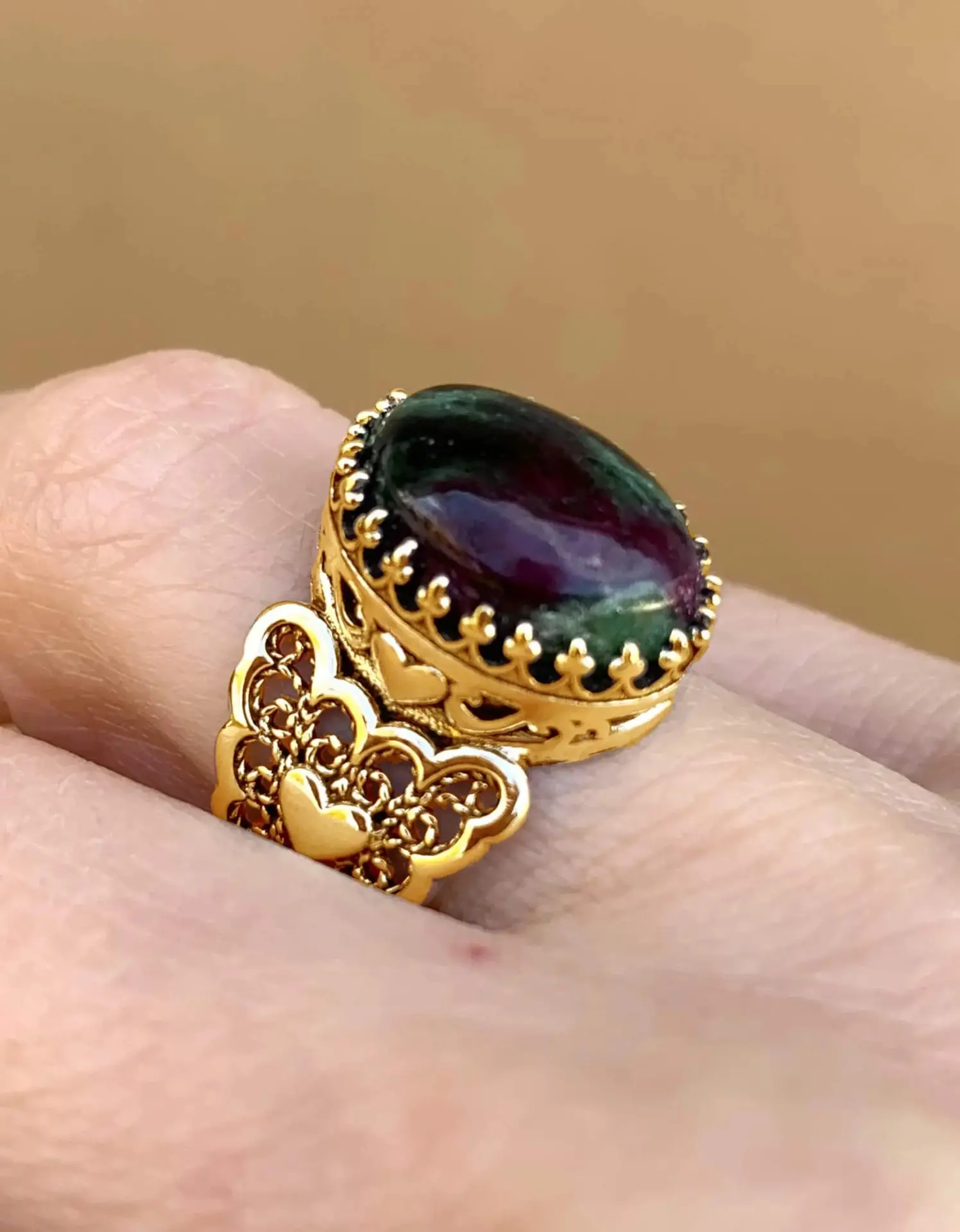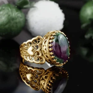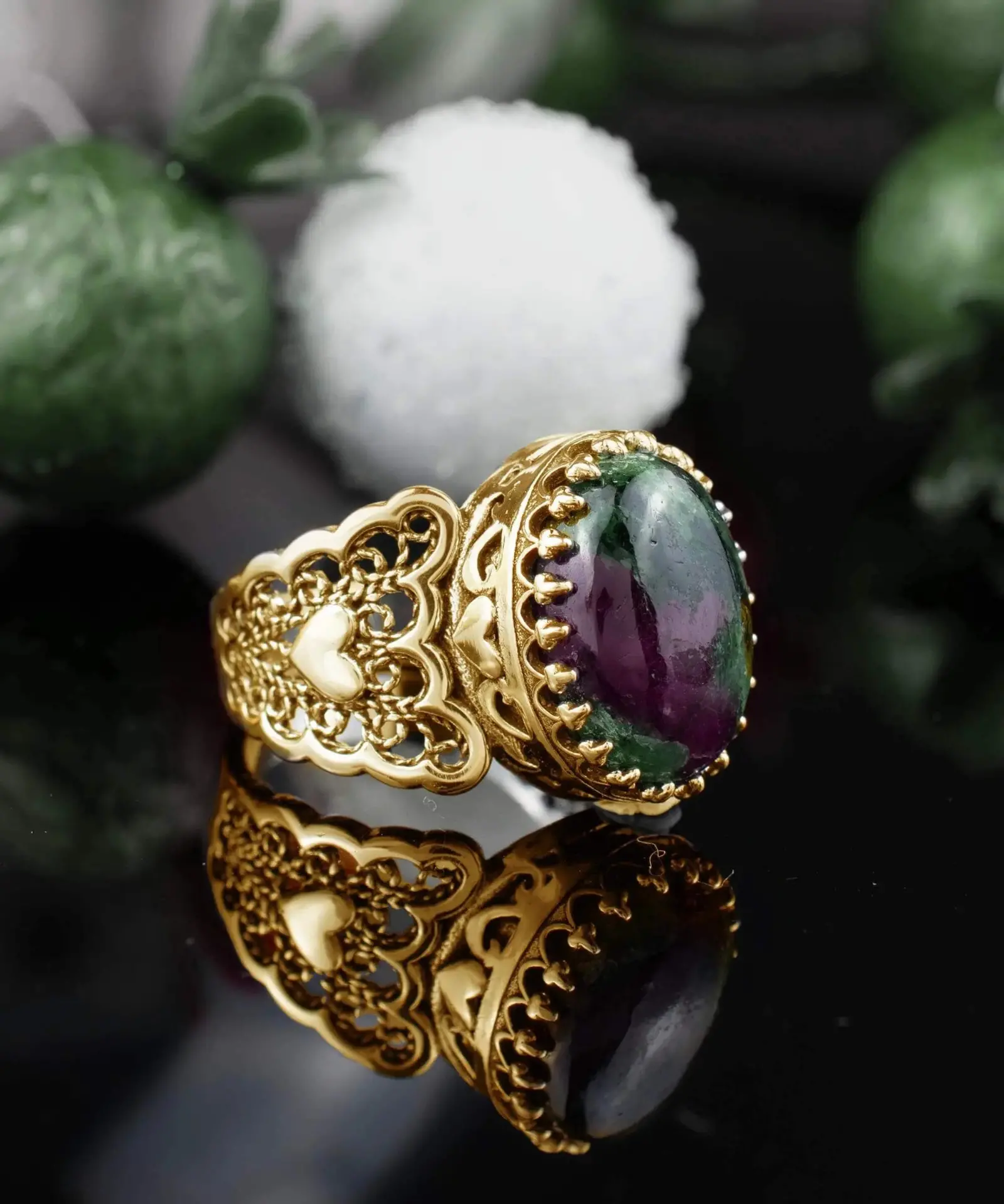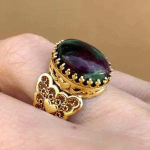 So why wait? Add Filigranist’s Gold Plated Sterling Silver Filigree Art Double Heart Detailed Ruby Zoisite Gemstone Women Statement Ring to your collection today and experience the timeless beauty and sophistication of this stunning piece.