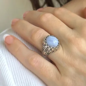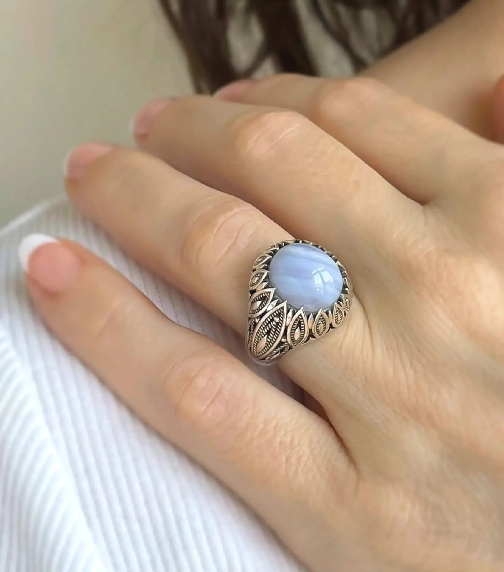 The beautiful Blue Lace Agate gemstone featured in this ring adds a touch of sophistication to any ensemble. Meticulously crafted with precision and care, this ring is more than an accessoryit’s a statement of timeless elegance. Each detail contributes to the overall luxury and charm of this exceptional piece.