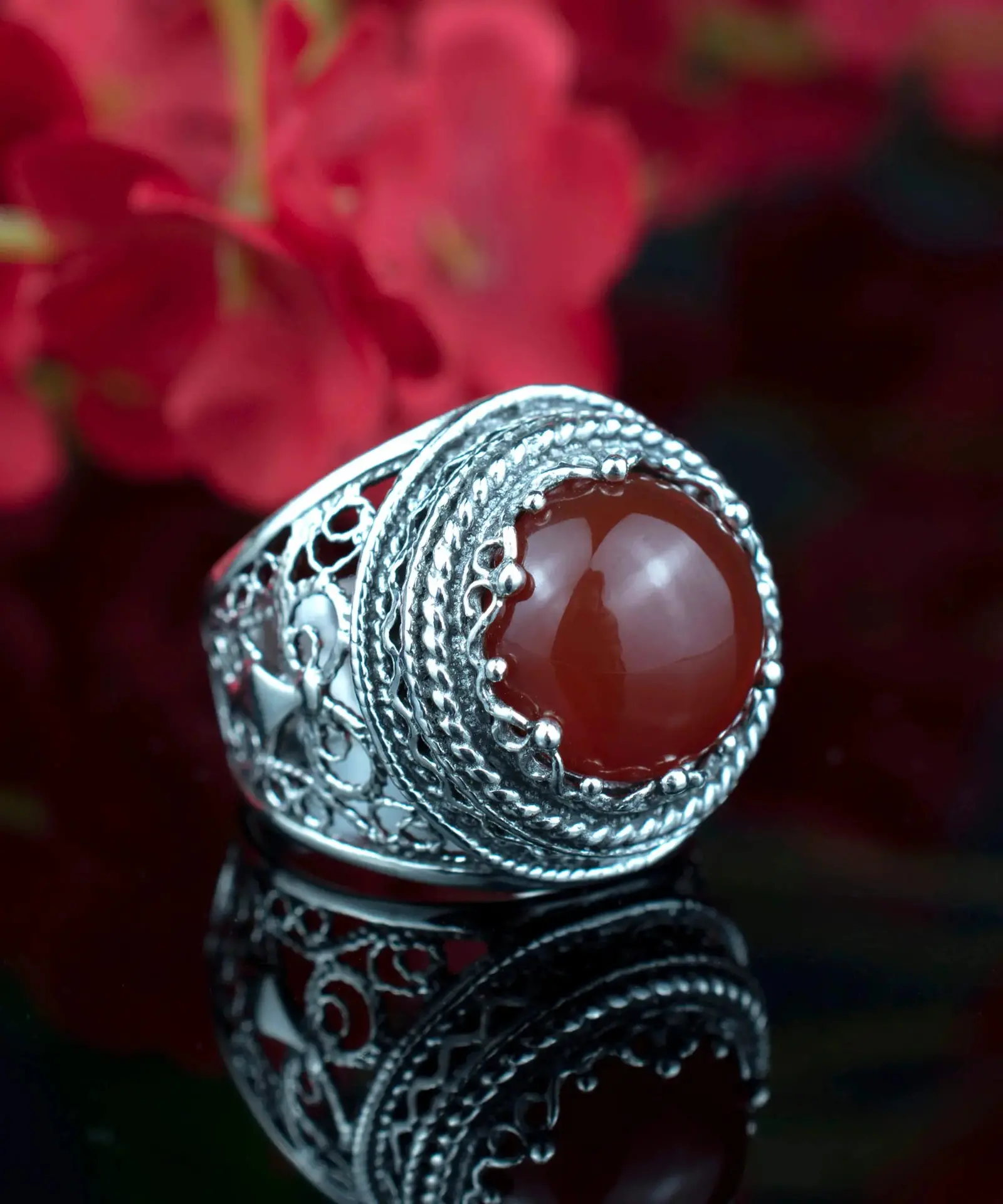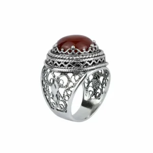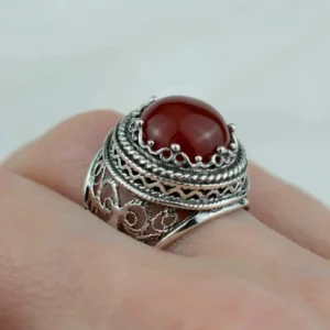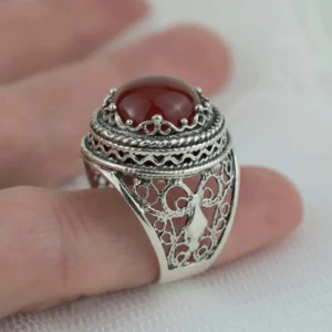Seize the opportunity to own this truly unique and beautiful piece of jewelry. Order now and experience the mesmerizing beauty and timeless elegance of our handcrafted filigree art Carnelian gemstone women’s bold silver ring.