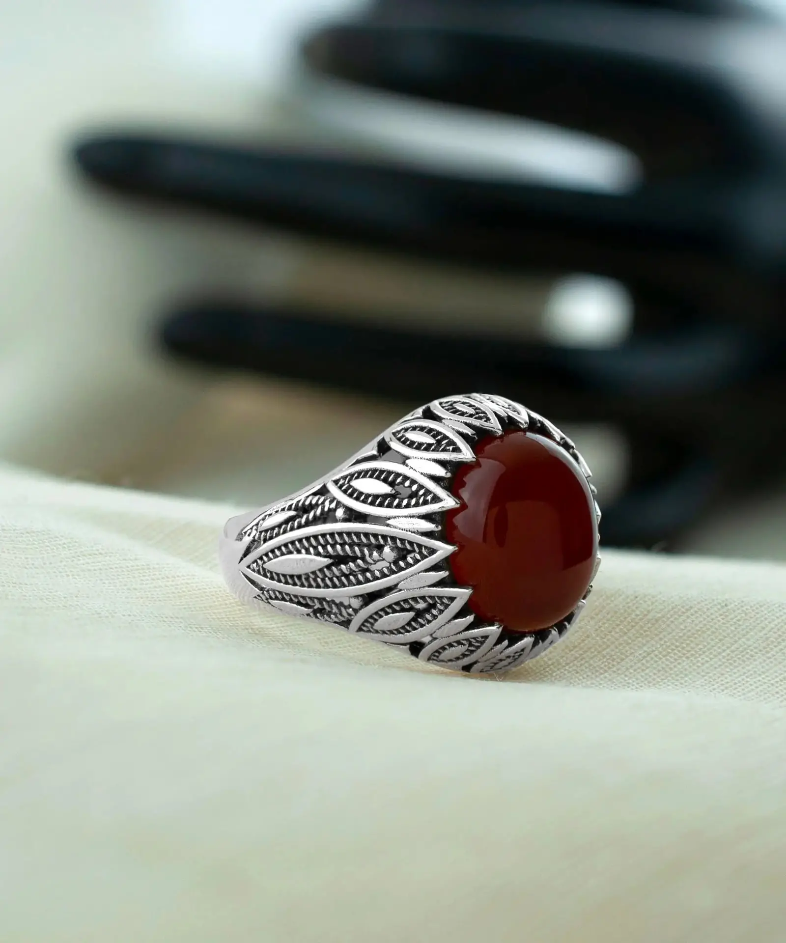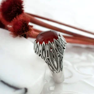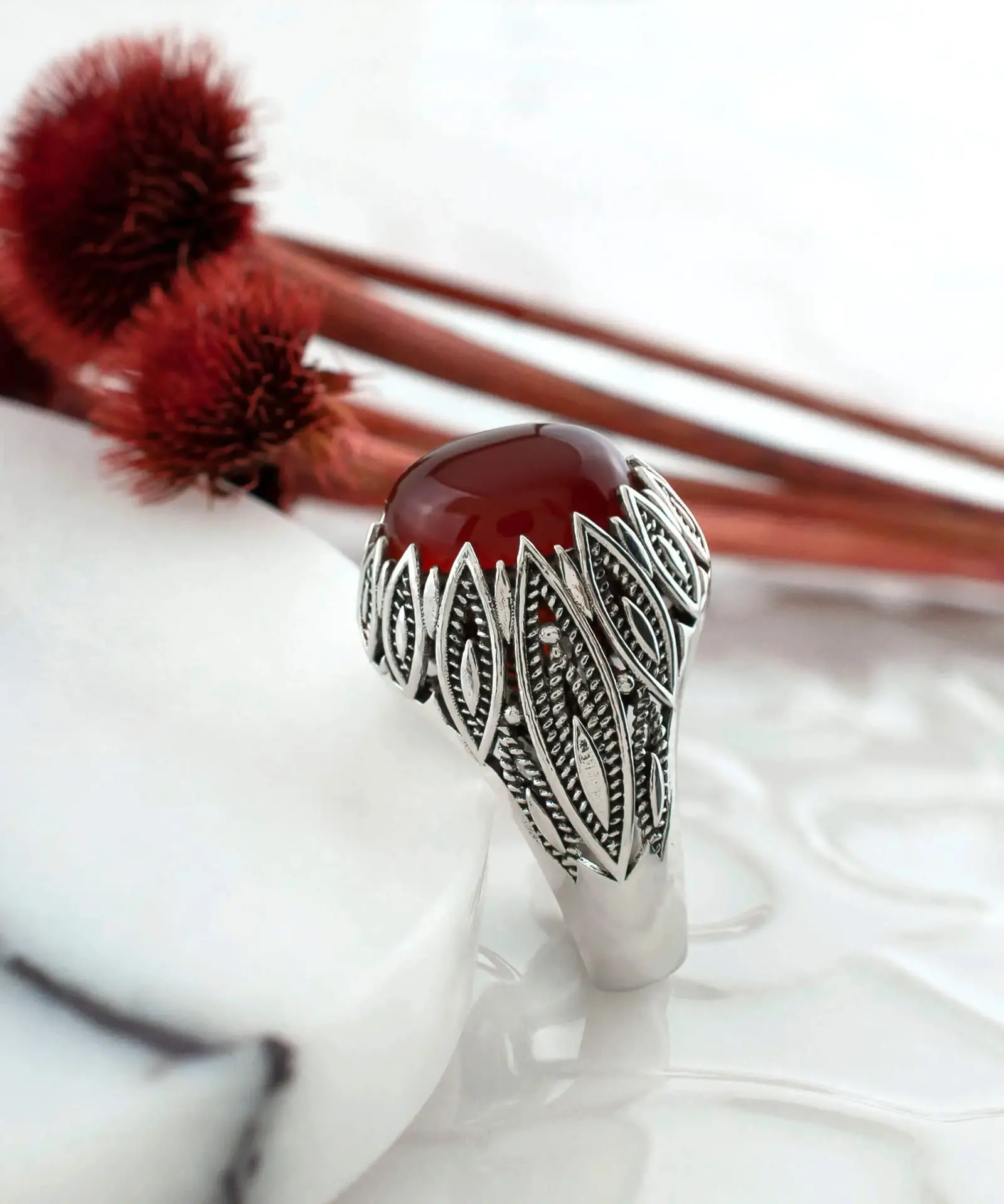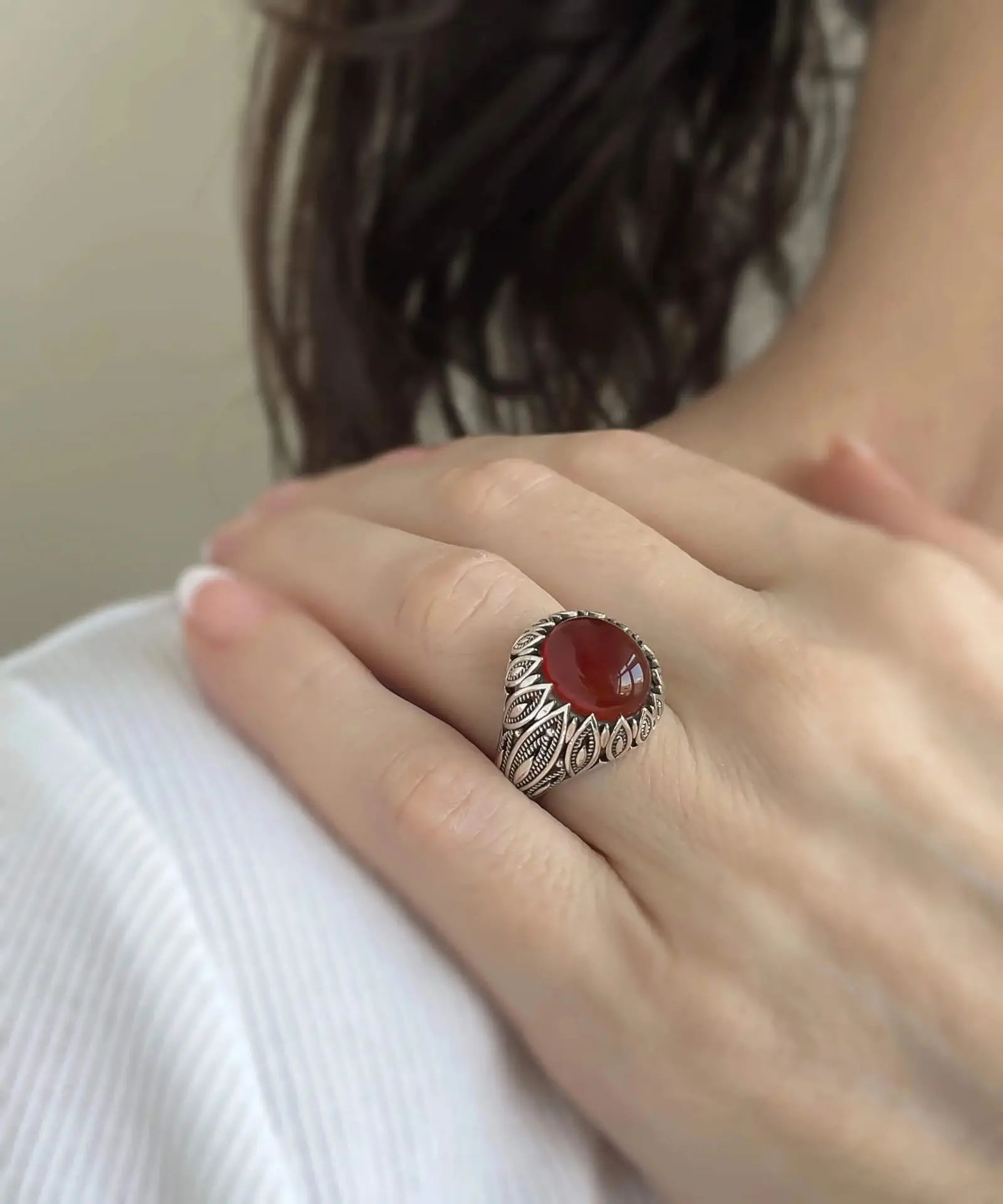 The 925 Sterling Silver Women Dome Ring with a Carnelian Gemstone is the perfect gift for the special lady in your life. The filigree art leaf detailed ring is not only beautiful and unique but also holds the allure of a stunning Carnelian Gemstone, making it a timeless and heartfelt expression.