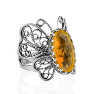 Searching for a truly special gift to present to her? Look no further than our Sterling Silver Filigree Art Citrine Gemstone Butterfly Cocktail Ring. With its unique and intricate design, this ring is certain to captivate, impress, and bring delight. A timeless piece that she can cherish for years to come, it’s an ideal choice for those significant occasions, whether it’s the warmth of Mother’s Day or the promise of a New Year.