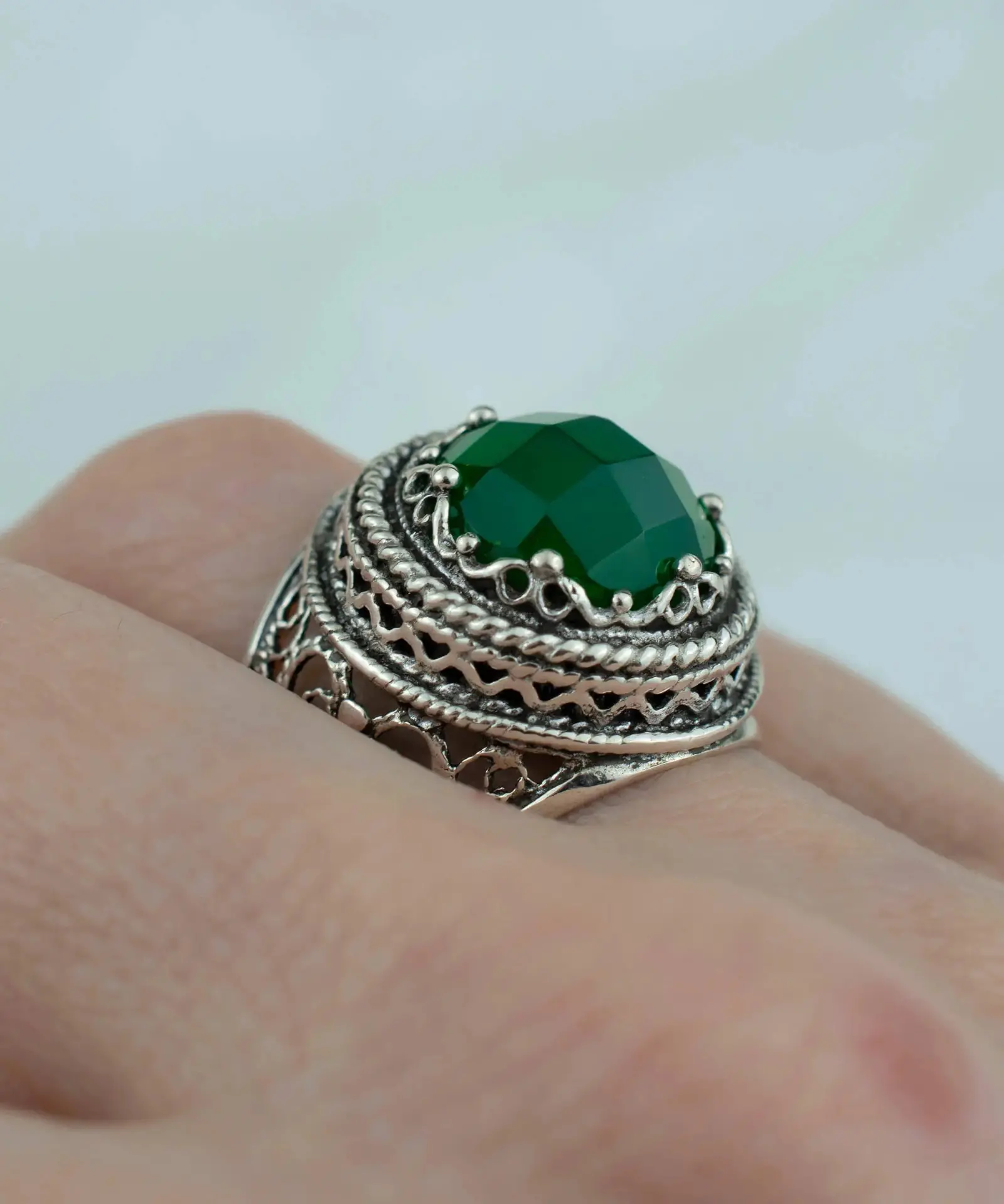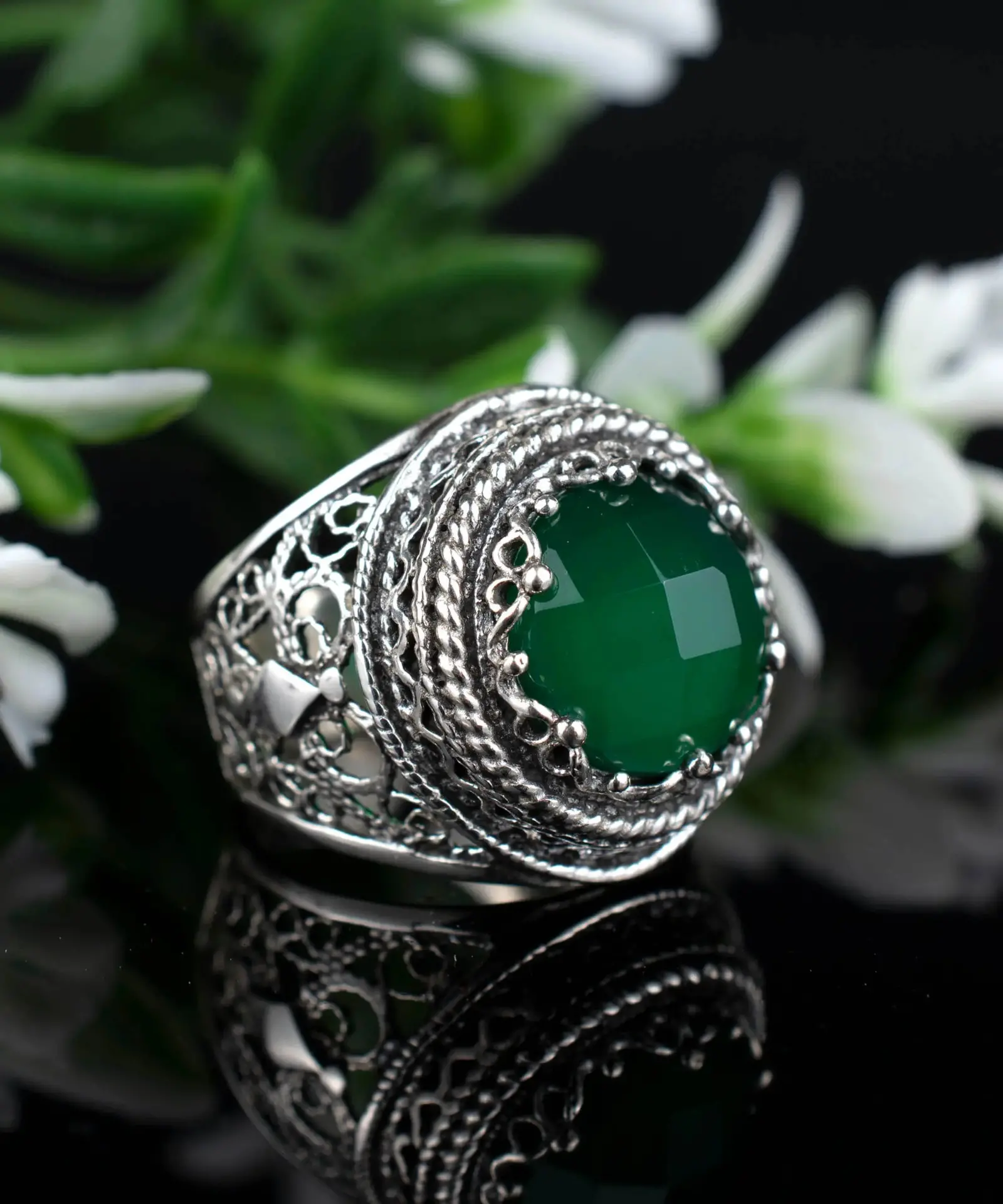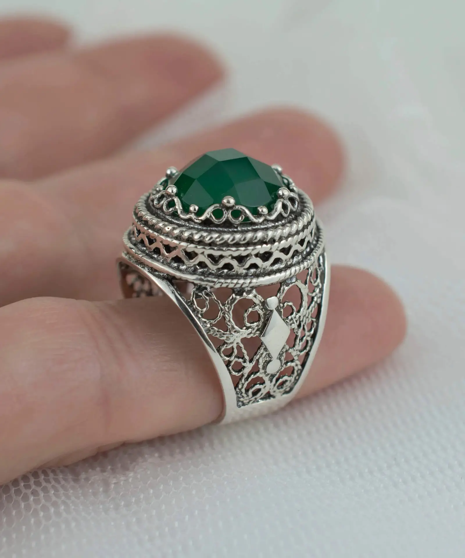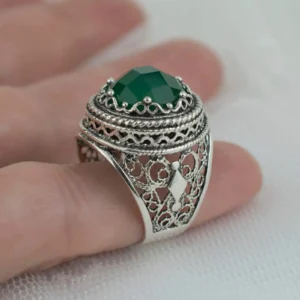 Don’t miss the opportunity to own this beautiful and one-of-a-kind piece of jewelry. Place your order now and experience the beauty and elegance of our handcrafted filigree art Green Agate gemstone women’s bold silver ring.
