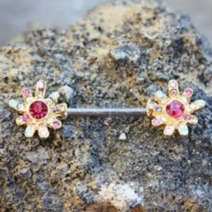 Nipple Bar / Nipple Jewelry with multi-color jeweled flower
