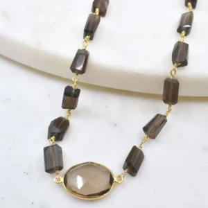 Hana Wrap Bracelet/Necklace in Smoky Quartz – Chunky Stone