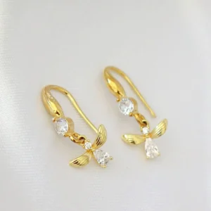 Bee hook earrings with cubic zirconia inlays.