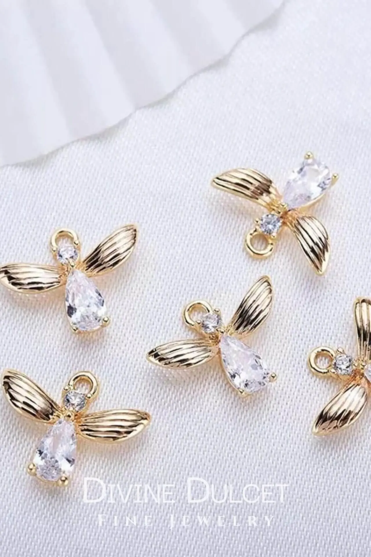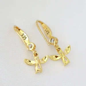 These cute bee earrings are made of 24 karat gold plated 925 sterling silver and cubic zirconia inlays that generate beautiful little sparkles against light.