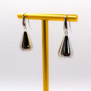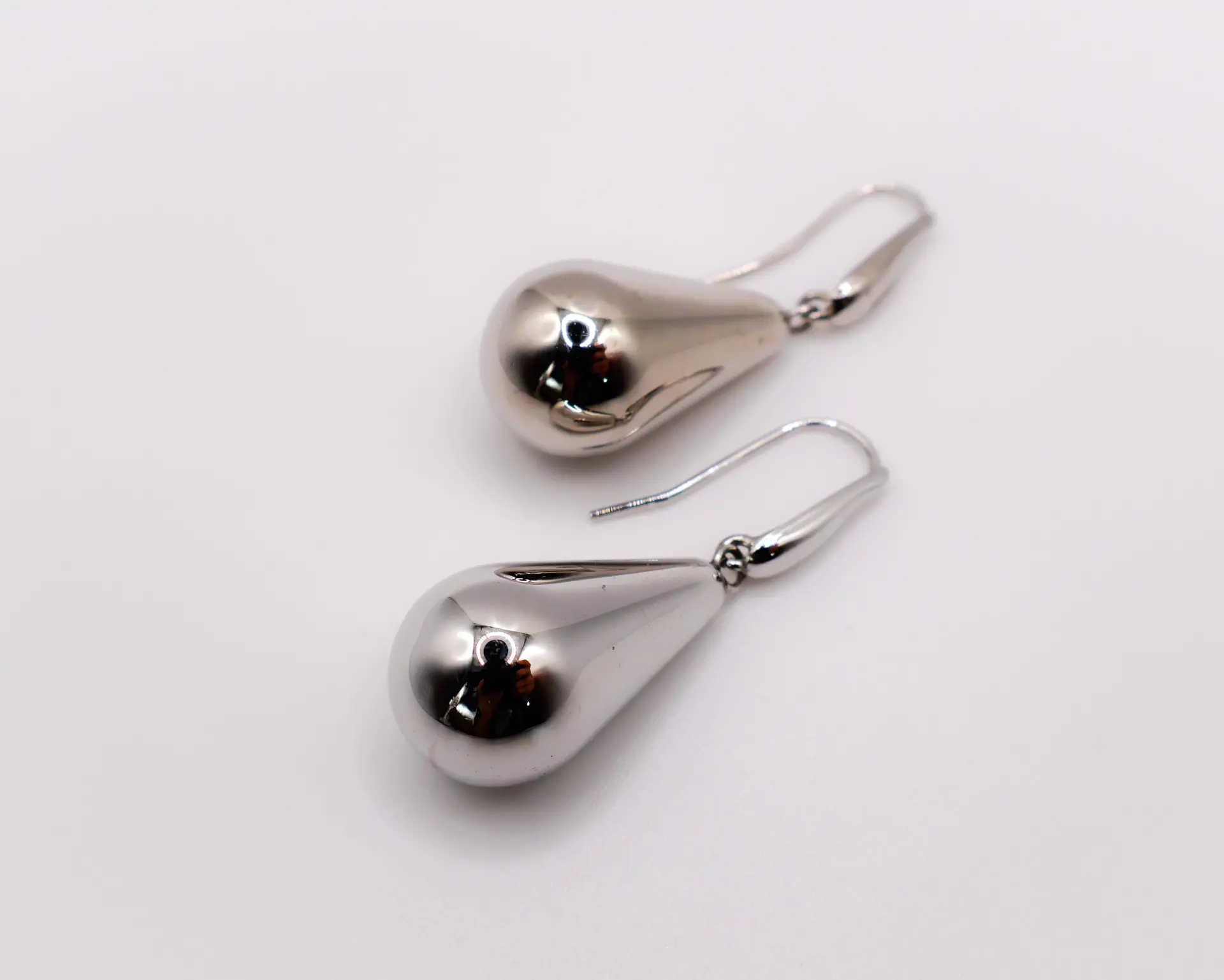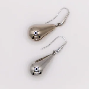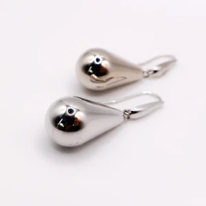 The smooth, polished silver surface captures the essence of raindrops cascading from the sky, reflecting light and creating a subtle yet captivating shimmer. Each earring dangles elegantly from your ear, adding a touch of movement to your look.