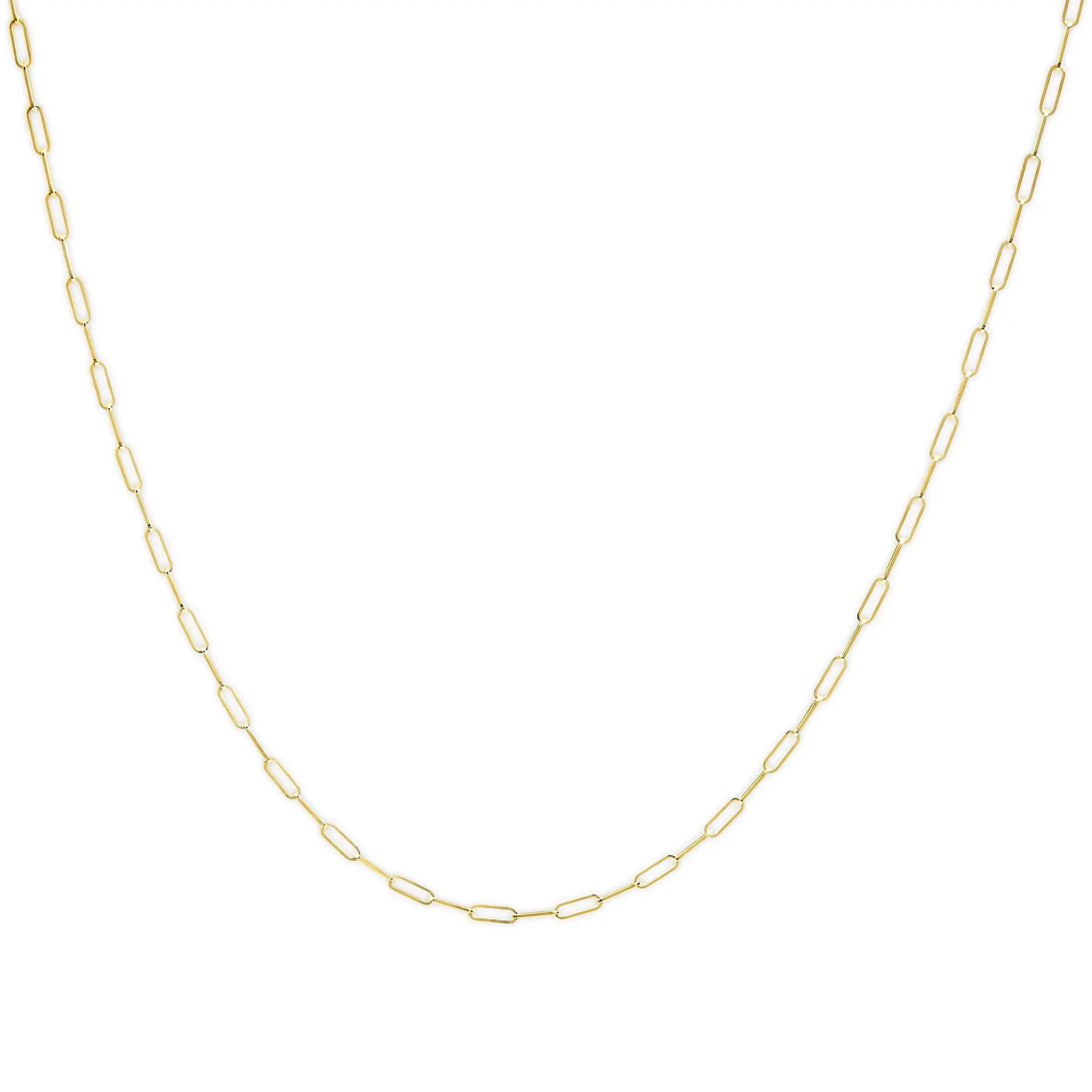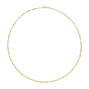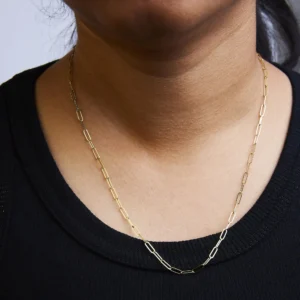 Introducing a timeless masterpiece, this exquisite 14K White Gold Paperclip Chain Necklace is a captivating blend of elegance and versatility. Crafted with meticulous attention to detail, this unisex chain features a 2.5mm width and a 18-inch length, ideal for both men and women. The solid 14K white gold construction radiates opulence, while the paperclip design adds a modern twist to this classic piece. Fastened securely with a lobster claw clasp, this necklace effortlessly elevates any outfit, from casual to formal. Experience the allure of this golden treasure, a must-have addition to your jewelry collection.